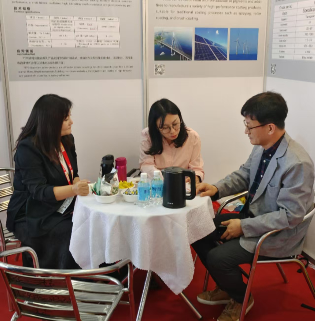 公司產(chǎn)品憑借其卓越的耐候性,優(yōu)異的耐腐蝕性、光澤性、耐污性等特點(diǎn),贏得眾多潛在客戶的高度評價(jià)與廣泛認(rèn)可。在本展區(qū),眾多國內(nèi)外客戶駐足參觀,公司專業(yè)團(tuán)隊(duì)與多國客戶深入交流,就產(chǎn)品合作事宜深入洽談,介紹了產(chǎn)品特點(diǎn)、技術(shù)優(yōu)勢及企業(yè)發(fā)展規(guī)劃,客戶對福諾歐的產(chǎn)品技術(shù)高度贊揚(yáng),表達(dá)了強(qiáng)烈的合作意向。